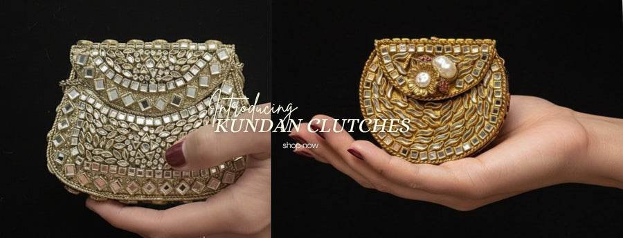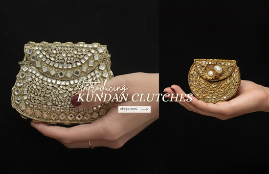 Design detail: This exquisite mini clutch is a celebration of heritage, meticulously hand-applied with intricate Kundan work that captures and reflects light from every angle.Includes a delicate, detachable gold-tone chain strap.Dimension: 5'x 4'x 1.5'Origin: Proudly and ethically handmade in Pakistan. Note: Because...